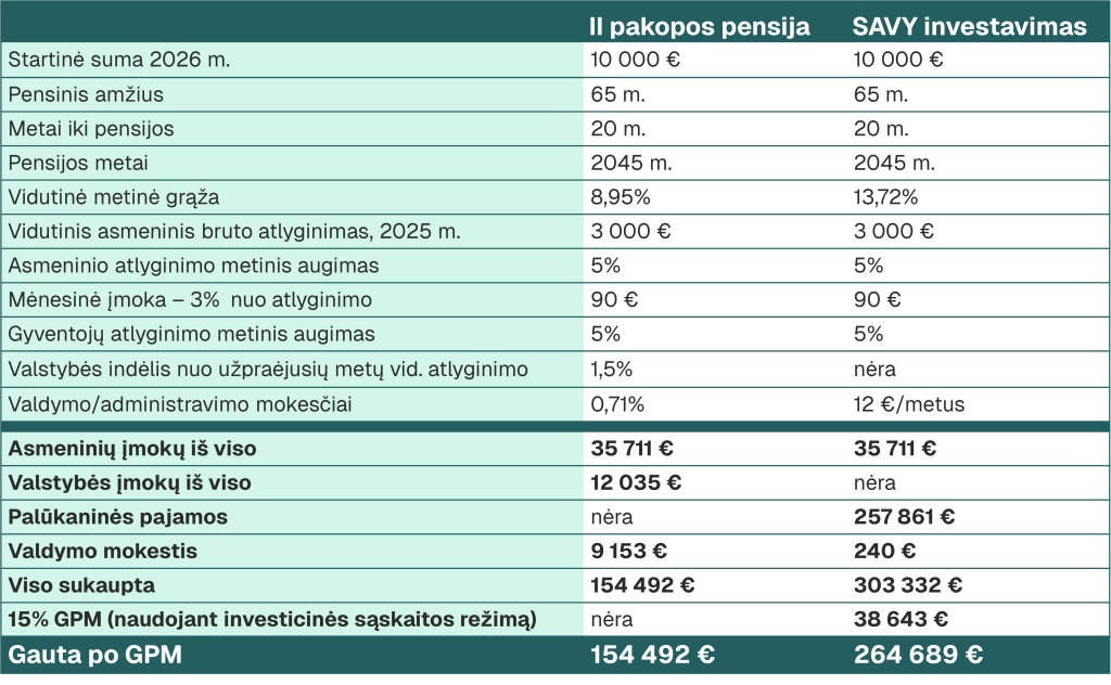 Kaupimo II pensijų pakopoje ir SAVY platformoje palyginimas
